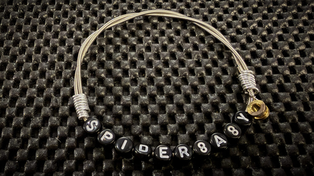 Take a look at our handmade BRACELETS – each one meticulously hand crafted from our used Guitar Strings, and beaded with our band name and song titles. (These are handmade no two are identical, expect differences)